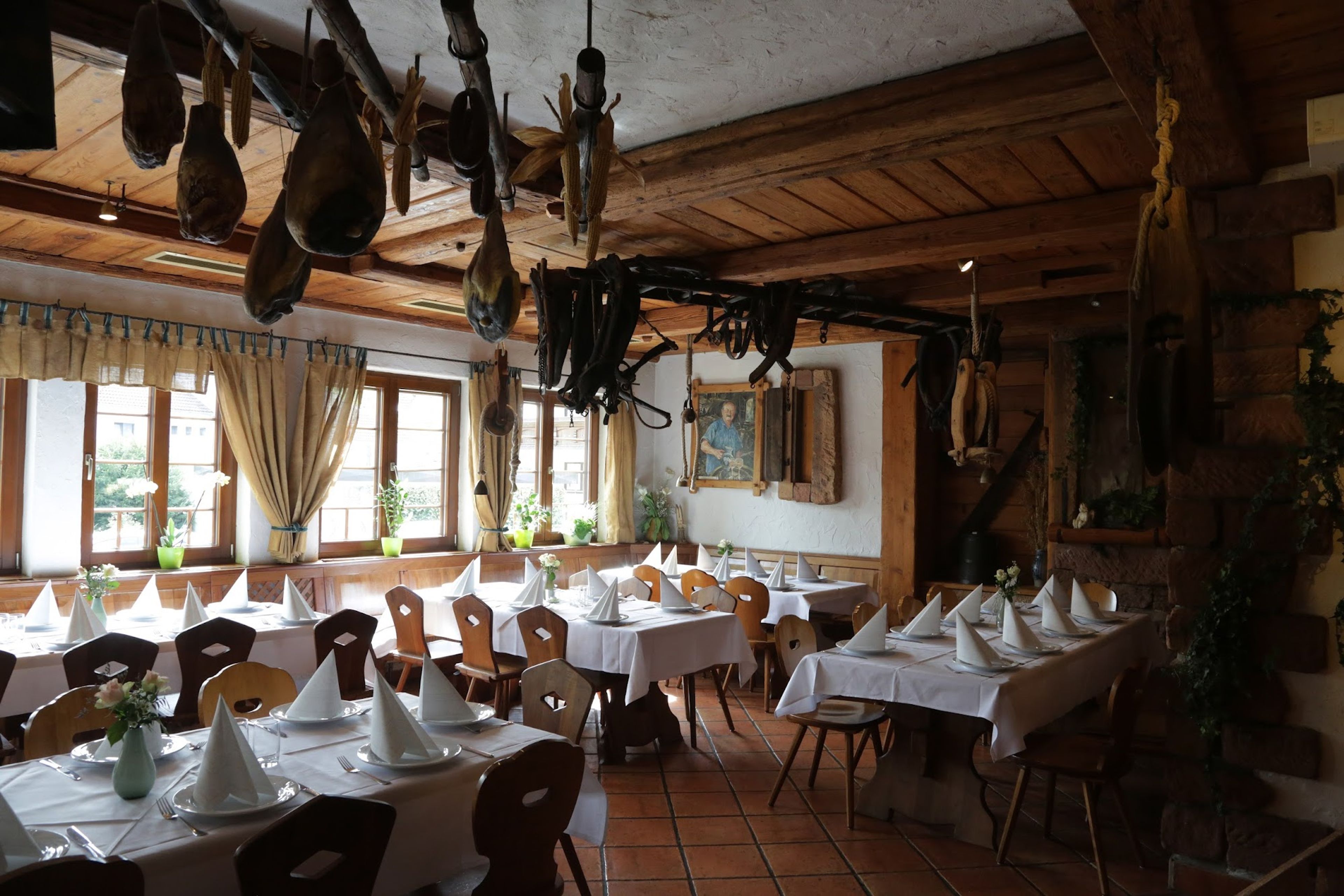 The restaurant maintains the regional dining customs through regular communal gatherings where guests share tables while enjoying seasonal Black Forest specialties.