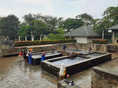 Madunagala is a facility with several connected pools where water flows continuously, creating bathing areas at different temperatures throughout. This design allows visitors to adjust gradually to warmer waters as they move between the pools.