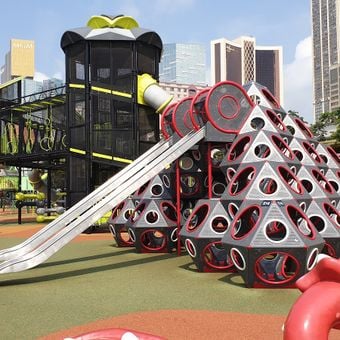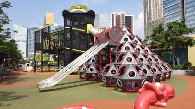 Visitors can access multiple facilities including lockers, vending machines, restrooms, and a 2,700-square-meter playground with European safety standards equipment.