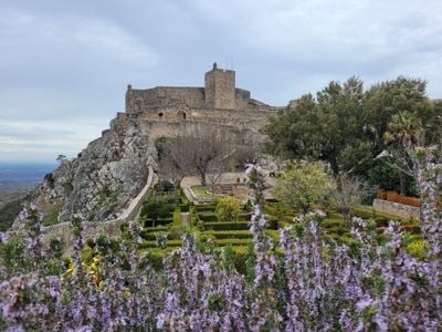 The stone-walled settlement sits at 865 meters on a granite peak, offering views across the Alentejo plains and Spanish border regions.