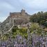 The castle features defensive elements such as arrow slits and a winding entrance, with granite walls that mirror the natural rock formation beneath.