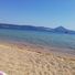 The white sand stretches along the Mediterranean coastline, creating a natural barrier between the sea and the protected lagoon behind the beach.