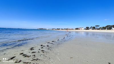 The Grande Plage extends along the southern coast of Brittany with fine sand facing Quiberon Bay, framed by historic summer residences.
