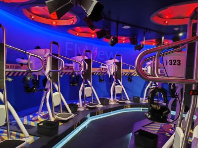 FlyView Paris operates 50 jetpack simulators equipped with virtual reality headsets, offering aerial views of French landmarks through 360-degree real drone footage.