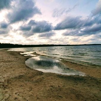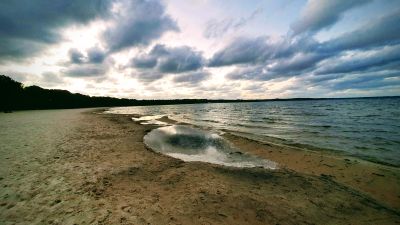 Central Beach Lake Biscarosse, Lakeside beach in Biscarrosse, France.