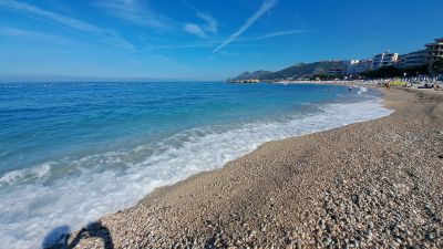 The 400-meter-long Veliki Pijesak features white pebbles mixed with brown sand and extends up to 50 meters in width along the Montenegrin coast.
