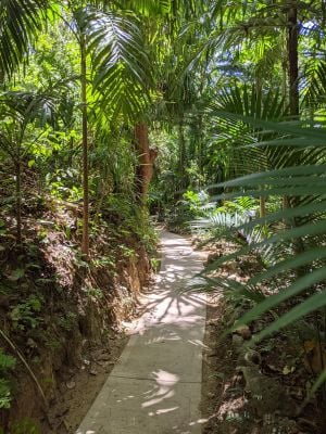 Carambola Gardens is a botanical garden on the island of Roatán in Honduras that cultivates tropical plants and fruit trees. The site features different varieties of carambola trees and other exotic plants arranged throughout its grounds.