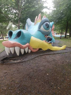 Dragon Park features an expansive playground with dragon sculptures, walking trails, and various recreational facilities spread across its carefully designed grounds.