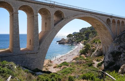 The beach forms part of the Côte Bleue region, which has served as a natural harbor for maritime activities since ancient Roman times.