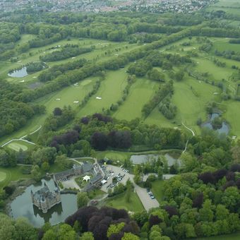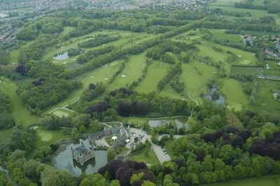 The golf course, designed by Paul Rolin and Dimitri van Hauwaert in 1988, integrates the grounds near Cleydael Castle, which dates from 1259.