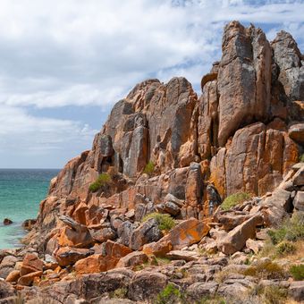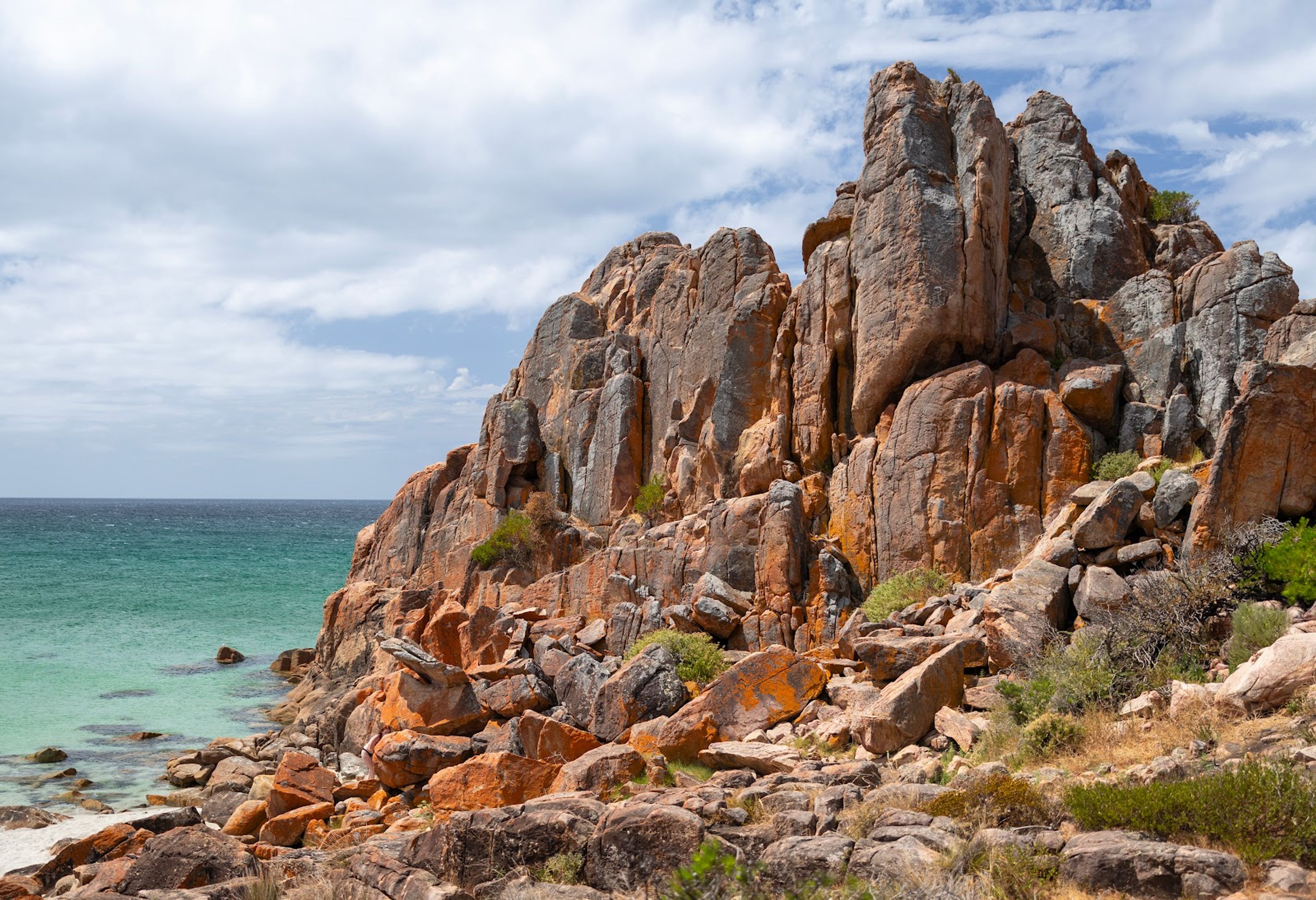 Castle Rock extends along the Western Australian coastline with granite cliffs that emerge from the Indian Ocean waters near Busselton.