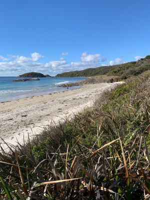 The lookout includes designated parking spaces and connects to walking paths that lead visitors to adjacent beaches and natural points of interest.