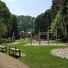The zoo features multiple animal enclosures within a natural forest setting, complemented by recreational areas and sports facilities throughout the grounds.