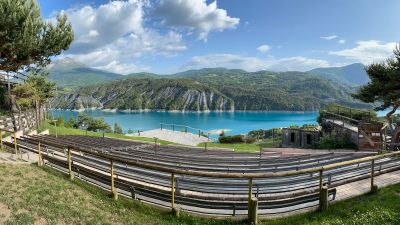 The Serre-Ponçon Animal Park presents various mountain species including marmots, foxes, and birds of prey in their natural environments near the lake.