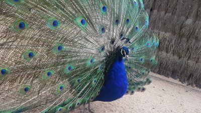 The park spans 4 hectares with water features, green spaces, and enclosures housing 360 animals including waterfowl, peacocks, and local farm species.