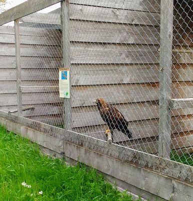The Hippogriffe facility presents equestrian falconry shows where trained horses and birds of prey perform together in an open-air arena.