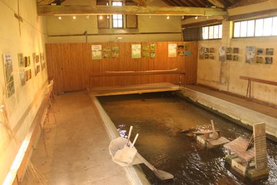 The aquarium functions as an educational center where visitors learn about water ecosystems through guided tours and temporary exhibitions about rivers.