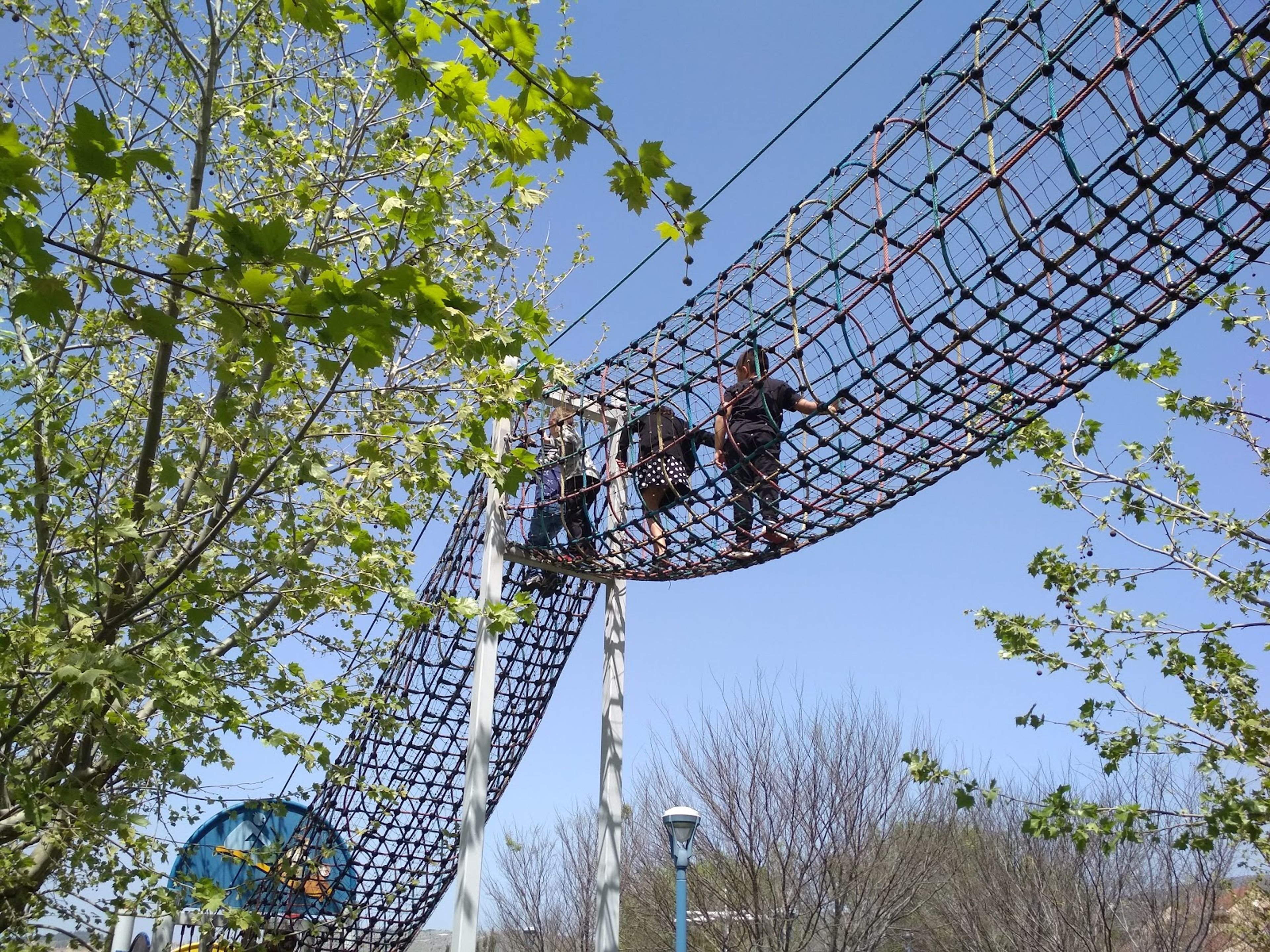 The park includes a two-story indoor gymnasium, water fountains for splashing, and a plant maze that provides entertainment throughout different weather conditions.