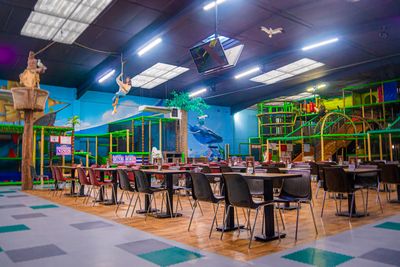 The indoor play center incorporates a pirate theme throughout its structures, with special appearances from characters like Mickey and Spider-Man during scheduled events.
