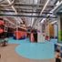 Children between ages 0 to 12 engage in various physical activities while parents observe from designated areas throughout the facility.