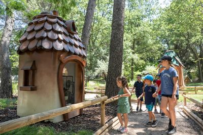 The Village des Automates extends across 8 hectares of woodland filled with oak and pine trees, featuring 50 mechanical figures and attractions.