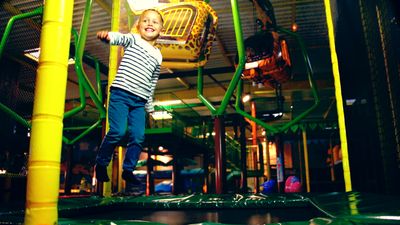 The entertainment complex spans multiple areas with dedicated zones for physical activities, creative games, and interactive play equipment for children.