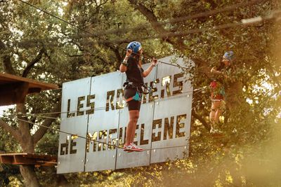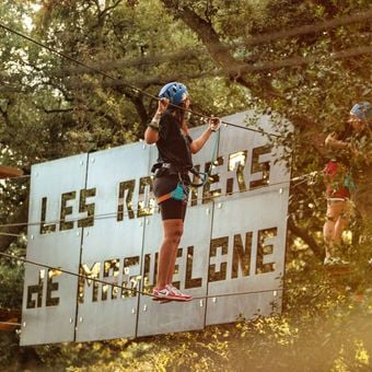 A 200-meter giant zip line positioned 35 meters high allows visitors to glide across the entire forest of Rochers de Maguelone.