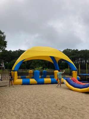 Fun Park Plage spans across a large area featuring trampoline zones and inflatable structures designed specifically for children aged between 2 and 13 years.