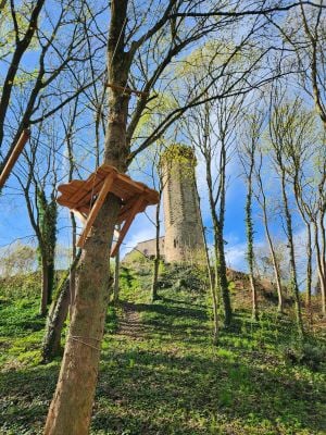 Visitors can experience a sequence of nineteen consecutive zip lines while enjoying panoramic views that extend 360 degrees around Schlossberg Castle.