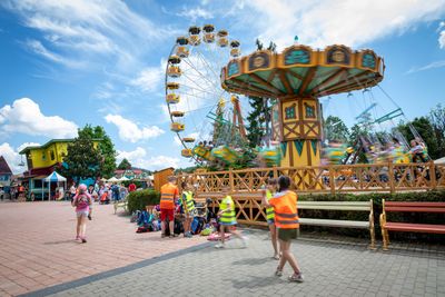 The park spans across 16 streets and 6 squares, featuring 48 different attractions suitable for both children and adults with carousels and interactive rides.