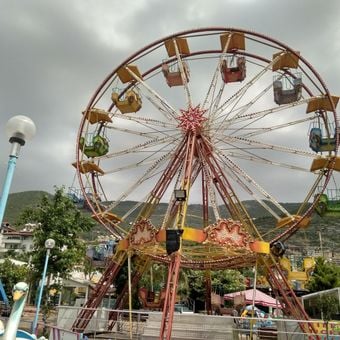 Disneyland Lunapark is a small amusement park in Alanya with modest rides and game attractions suited for families of all ages. The park features a neat layout with bright decorations, a Ferris wheel, carousels, and smaller roller coasters arranged in a compact space with clean pathways and shaded seating areas.