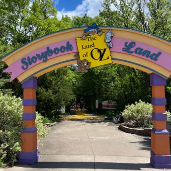 Storybook Land is a theme park in Aberdeen, South Dakota, featuring scenes and characters from well-known children's stories. The park includes rides such as the Humpty Dumpty Coaster and Jack & Jill, a carousel with hand-carved animals, and the Land of Oz area with Dorothy's House and a tornado effects show.