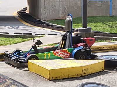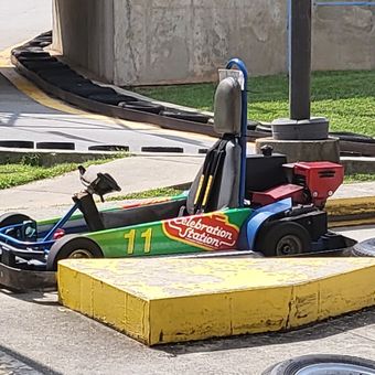 Celebration Station features an extensive arcade area, multiple go-kart tracks, miniature golf courses, and bumper boats across its outdoor entertainment complex.