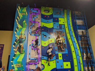 Three separate go-kart tracks provide different racing experiences, while six indoor climbing walls offer varied difficulty levels for climbers.