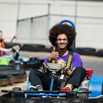 The location is easily accessible near major roads with ample parking available for visitors. Outdoor attractions like mini golf and go-karts operate during morning hours, while indoor areas remain open throughout the day, allowing flexibility in planning your visit.