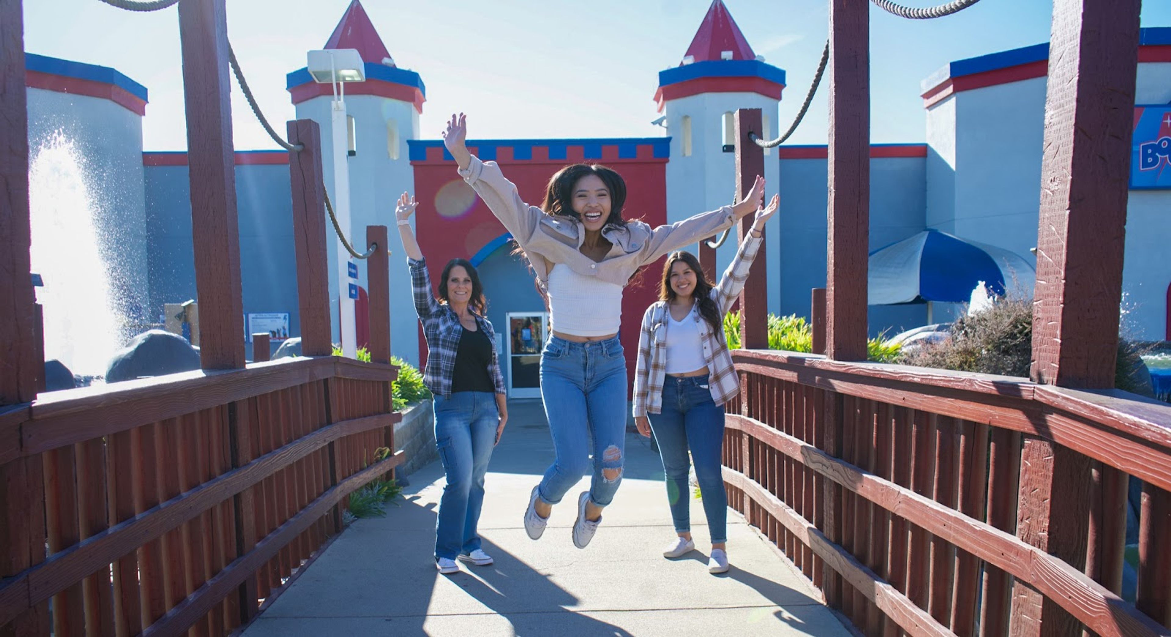 The park extends across multiple acres featuring go-karts, laser tag, mini-golf courses, bumper boats, and an indoor arcade with numerous gaming stations.