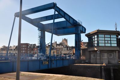 The Pont Levant Jehan Ango connects both sides of Dieppe's port with its central lifting mechanism that allows larger vessels to pass underneath.