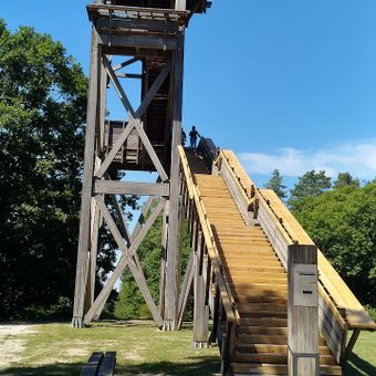 This observation platform stands 24 meters high atop the Caillettes hill, offering panoramic views over the Orleans forest canopy through 150 steps leading to the summit viewing deck.