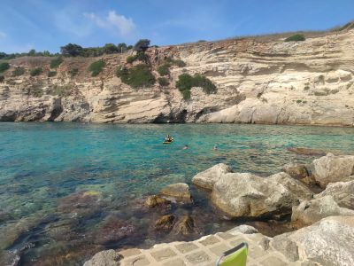 The Grotta delle Ancore sea cave near the beach contains natural rock formations shaped by centuries of water erosion.