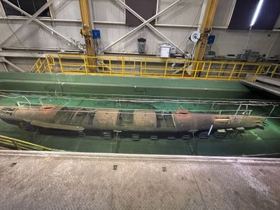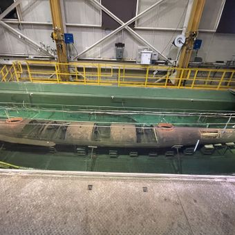 The H. L. Hunley is a preserved iron attack submarine in North Charleston, South Carolina, now displayed as a museum ship. It rests in a large water tank at the Warren Lasch Conservation Center on the Cooper River, where visitors can view the small vessel up close and walk through displays of recovered artifacts.