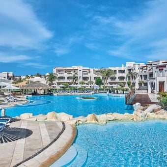 Iberotel Casa Del Mar Resort is a beachfront hotel on the Red Sea in Hurghada with direct access to sandy shores and rooms decorated in a simple modern style, many offering sea or pool views. The property includes multiple restaurants, year-round heated pools, a spa area, and a nearby dive center for exploring underwater coral reefs.