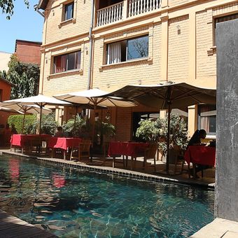 Sakamanga is a hotel in the center of Antananarivo, the capital of Madagascar, located in the Analamanga district, with 46 rooms that each have a different layout and style. The property has several dining areas including a poolside restaurant, a garden buffet, and a small express counter, along with a pool, a massage service, and a meeting room.