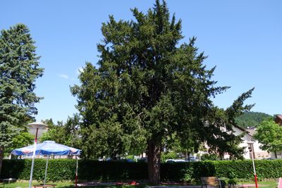 Zwei Eiben in Attersee, natural monument of Upper Austria in Austria