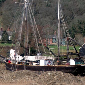 The vessel represents the final wooden merchant sailing ships constructed in southern England, using timber from the Cotehele estate.