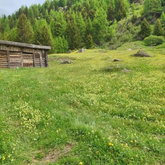 Stallwies Alm, Alpine pasture on the north side of the Windachtal in the Stubai Alps.