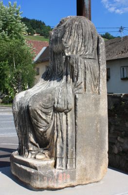Part of: Kirchhofmauer mit Spolien u Figurenbildstöcken