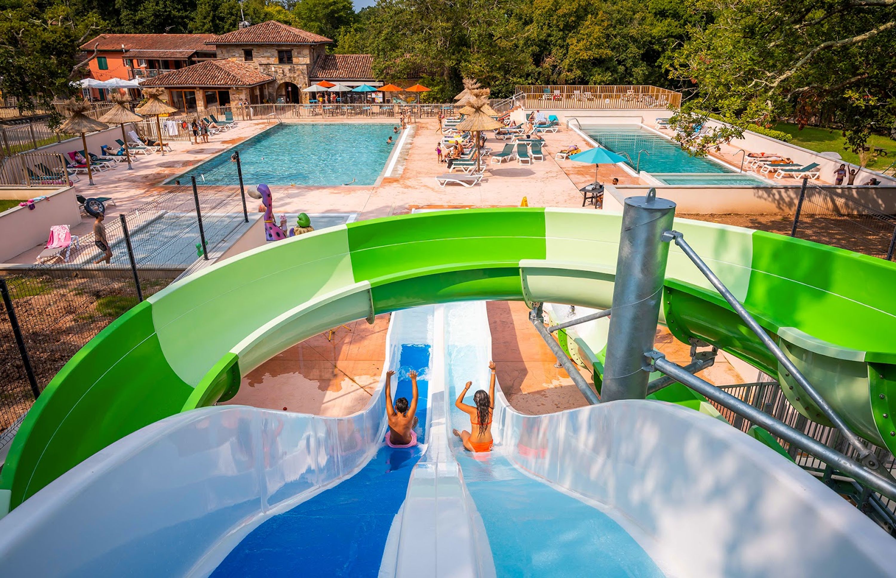 The Sunêlia Ibardin campsite spreads across 8 hectares of oak woodland between the Atlantic Ocean and the Pyrenees mountains near the Spanish border.