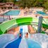 The campsite provides grass pitches with electric connections, a swimming pool complex, and scheduled entertainment activities during July and August.