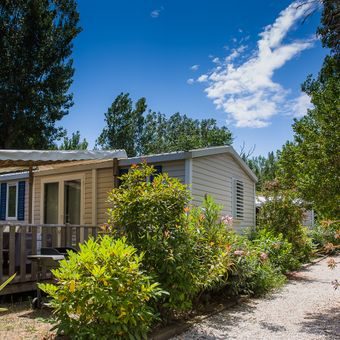 L'Étoile de Mer is a beachfront campground in Sérignan that provides camping pitches and modern rental units along the Mediterranean coast near sandy beaches. The facility stretches across the waterfront, mixing traditional camping spaces with more comfortable accommodation options.