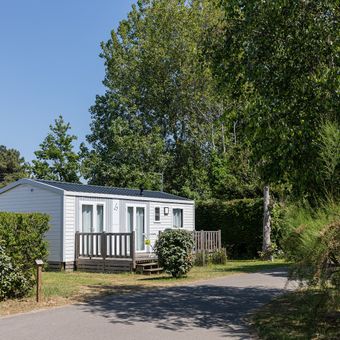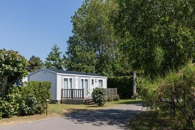 The campsite covers 7 hectares of forest land, offering chalets, mobile homes, cottages, and forest shelters with direct access to natural surroundings.